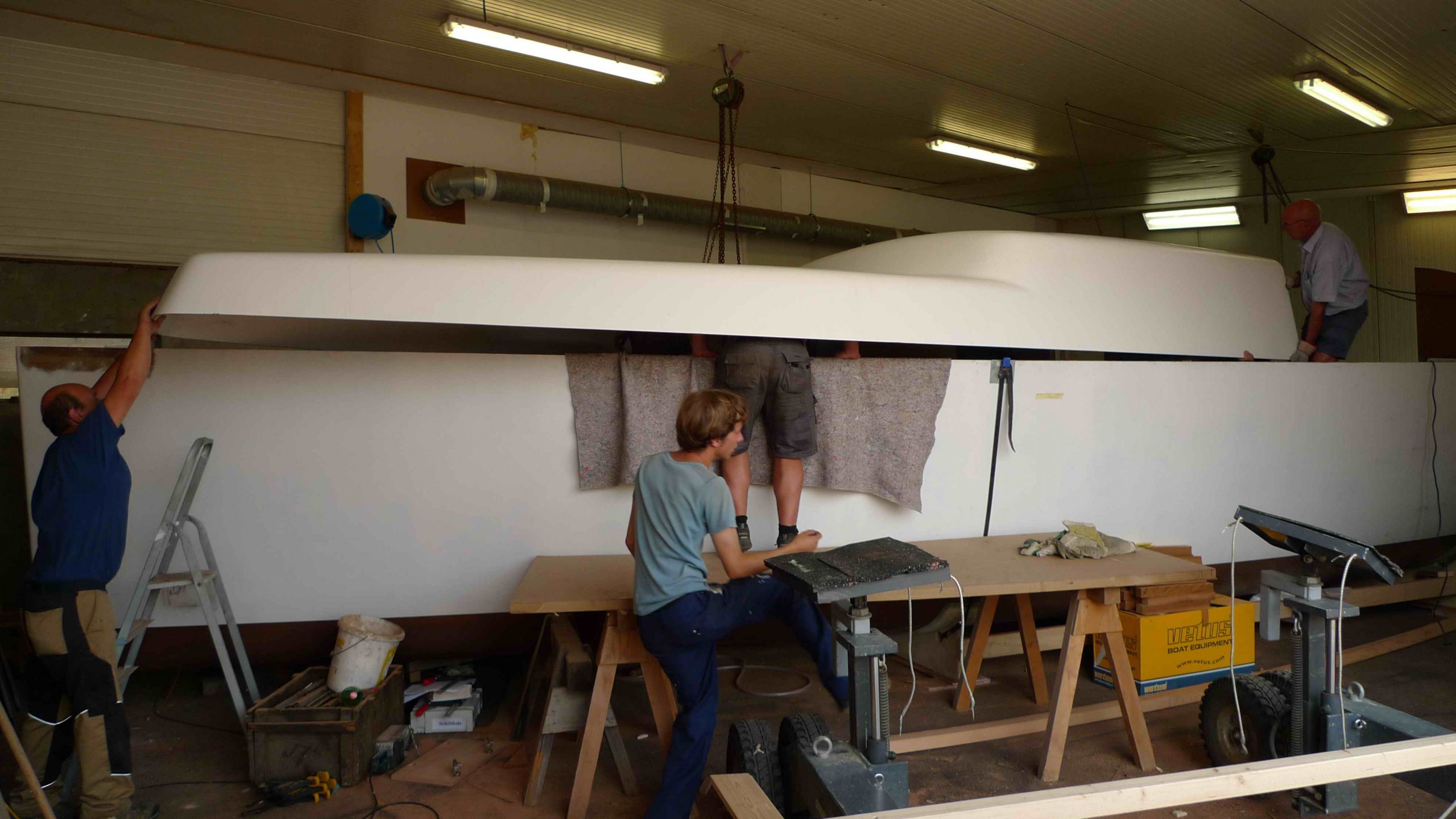 Ausführliche Stabilitätsuntersuchungen und die Formgebung des Rumpfes ähnlich eines großen Jollenkreuzers mit einer Breite von knapp 3,7m waren die Folge.